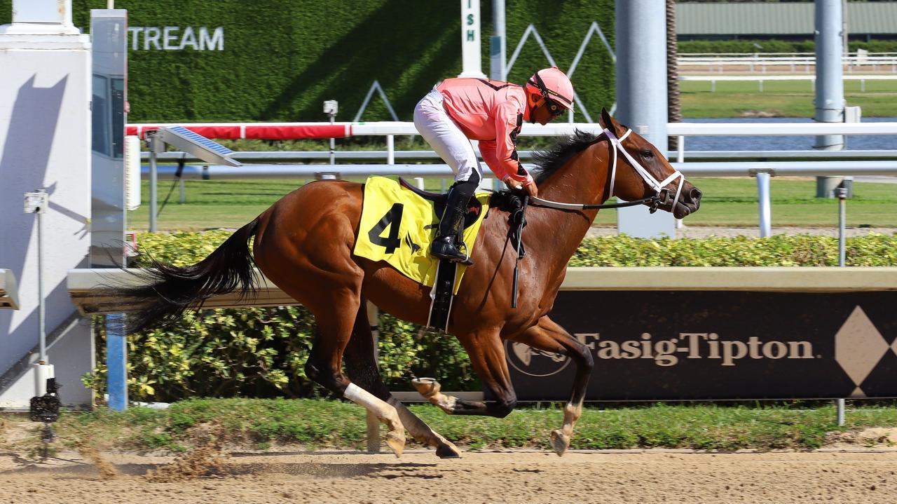 Propiedad de Robyn Káiser, quien también es su propietario, se mostró con talento para seguir escalando. Fue presentado por Nolan Ramsey, quien cerró fuerte en el Sunshine Meet de Gulsftream Park.